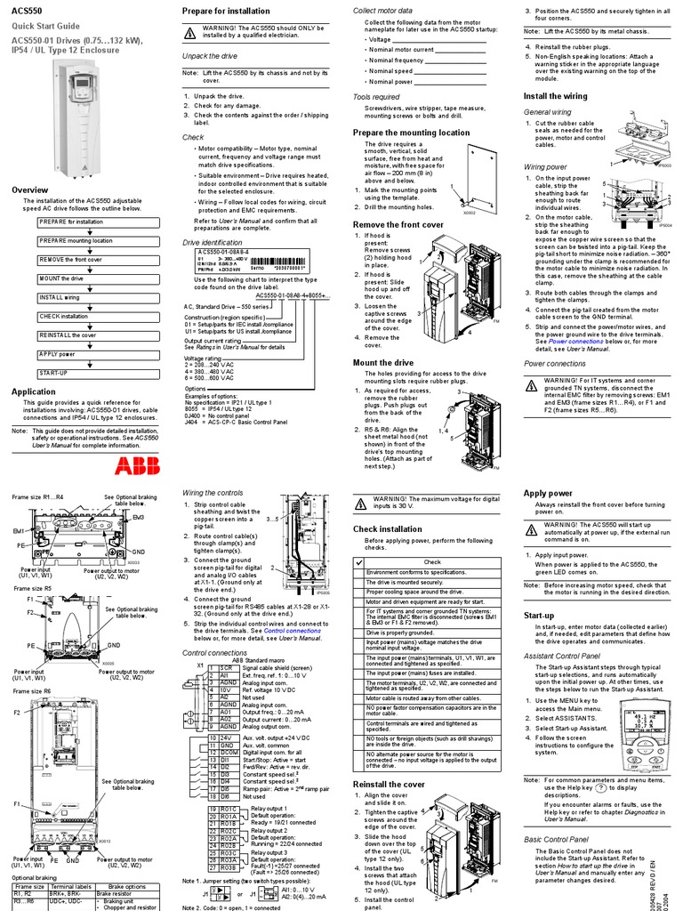 The macros should only be. A wiring diagram is a streamlined conventional photographic representation of an electric circuit. Refer to the ach550 uh users manual for control connections to the drive. Install the wiring note. The following figure shows the standard e bypass floor mounted wiring connection points. Installing the drive 4.