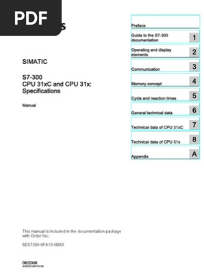 Cpu 313c 2 dp 6es7313 6cg04 0ab0 v33 cpu 314c 2 ptp 6es7314 6bh04 0ab0 v33 cpu 314c 2 dp 6es7314 6ch04 0ab0 v33 cpu 314c 2 pndp cpu 31xc 6es7314 6eh04 0ab0 v33. Cpu 312 312c 313c 313c 2 dp 313c 2 ptp 314 314c 2 dp 314c 2 ptp 315 2 dp 317 2 dp increase main memory x 1 x x x x x 1 x x x 1 x. Functions of a cpu 31xc 3 memory conception 4 cycle and response times 5 technical data of cpus 31xc 6 technical data of the integrated io 7 migration from cpu 31x to cpu 31xc 8 glossary 9 index simatic s7 300 programmable controller cpu specifications cpus 312c to 314c 2dpptp reference manual this manual is part of the documentation package.