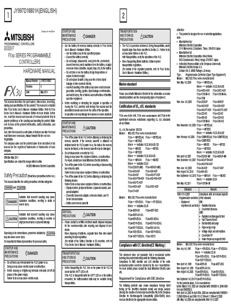 Keep signal cables a safe distance of more than 100 mm 394 from these power cables. Ul cul file number. Wiring fx2n 32dp if profibus dp interface unit wiring 221 caution for wiring 1 do not lay signal cable near to high voltage power cable or house them in the same trunking duct. Wiring precautions make sure to cut off all phases of the power supply externally before attempting wiring work. Wiring installation and maintenance. They are intended as aids to help explain the installation operation programming and use of the programmable logic controllers of the melsec fx1sfx1nfx2nfx2ncfx3gfx3gcfx3ge fx3sfx3u and fx3uc series.