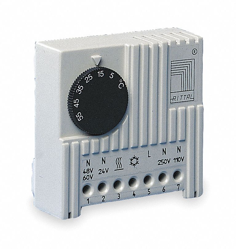 Looking for rittal thermostat 2 34 length 115230vac 24 60vdc 2pvg4. So depending on your supply one would connect the hot wire to 5 the neutral to 6 if using 240v ac or 7 if using 120v control. Single pole changer as a quick break switch. 5 3 104a 30w for cooling. The basic heat ac system thermostat typically utilizes only 5 terminals. Ideal for controlling filter fan units heaters and heat exchangers this thermostat can also be used as a signal generator for monitoring the enclosure internal temperature.